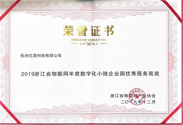 其中,由億茂科技服務的頤高創業園榮獲第一批“浙江省數字化小微企業園”4A級評定,億茂科技獲評第一批“2019浙江省物聯網年度數字化小微企業園優秀服務商”獎。
