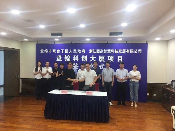 6月17日,盤錦科創大廈項目正式簽約。盤錦雙臺子區長李吉峰、副區長祝美娟等政府領導,頤高集團董事長翁南道、夢巢小鎮執行總裁郭守華、頤高互聯網科技副總裁馮潤澤等出現了簽約儀式。